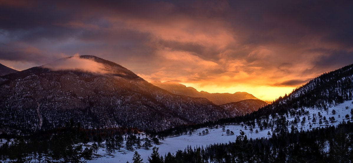 Remote mountain wilderness under cloud and shadow